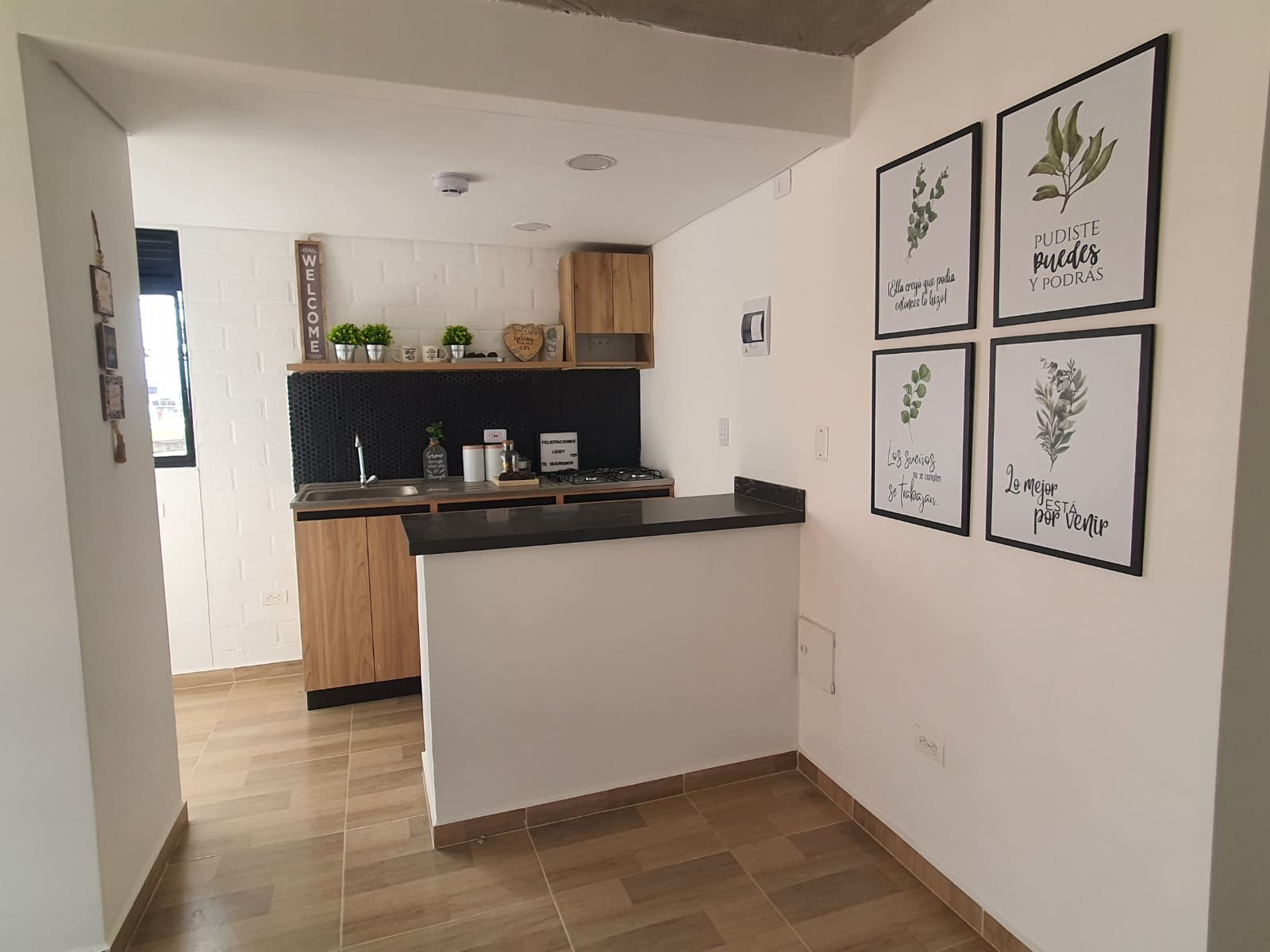Los apartamentos constan de: dos (2) habitaciones con su respectivo hall, sala -comedor, un baño, cocina y zona de ropas se entrega en condiciones mínimas habitables, que incluye mesón en acero inoxidable en la cocina, lavadero instalado y funcional, baño enchapado (piso y ducha), puerta de baño y acceso principal.